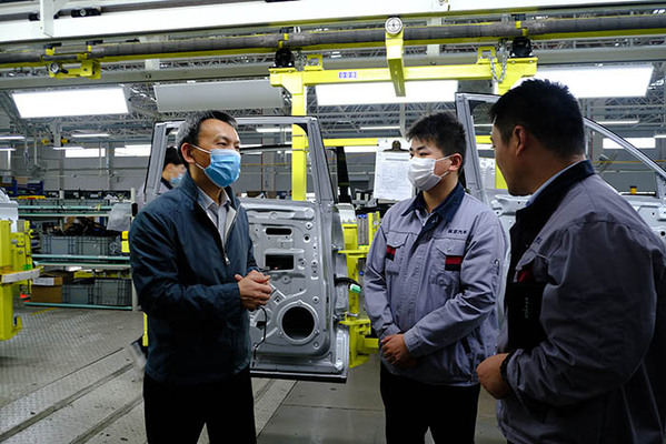 在經開區振宜新能源汽車公司,總經理孟濤等熱情接待了調研組一行,介紹了企業生産和用工情況。童宏葵就人才培養、校企合作、共建産教融合基地等工作與孟濤交換了意見,并詳細了解了駐企參加實踐活動的教師段春晖工作和生活情況。童宏葵一行來到總裝車間,實地看望了正在生産的畢業生。公司人事管理部門的負責人介紹,到目前為止,學校已有140名畢業生在公司工作,他們工作勤奮,技術過硬,有不少人已走上班組長甚至是工段長崗位。2018級新能源專業畢業生葉鳴,去年就當上了班組長,他高興地介紹:“我上了一所好學校,學了一個好專業,進了一家好企業,感謝母校領導和老師對我的辛勤培養,我一定要努力工作,為安慶經濟發展作出更大貢獻。”
