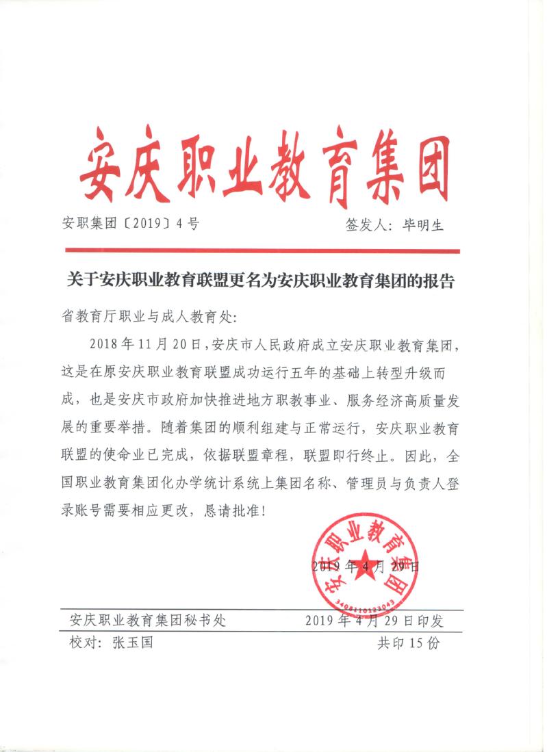 關于安慶職業教育聯盟更名為开云体育的報告